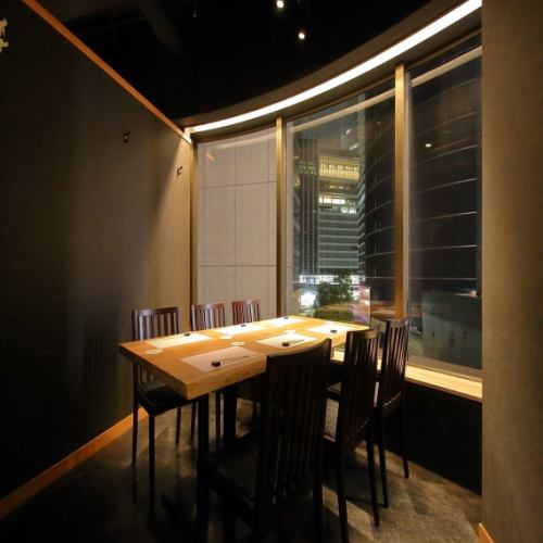 【6名様からご案内出来るテーブル席の完全個室】夜景を一望いただける人気のお席となります。