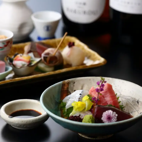 刺身盛り合わせや旬の食材を使った創作和食をご提供致します。季節のお魚料理と、厳選された日本酒や焼酎を中心としたお食事をご用意しております。ぜひごゆっくりとお楽しみください。